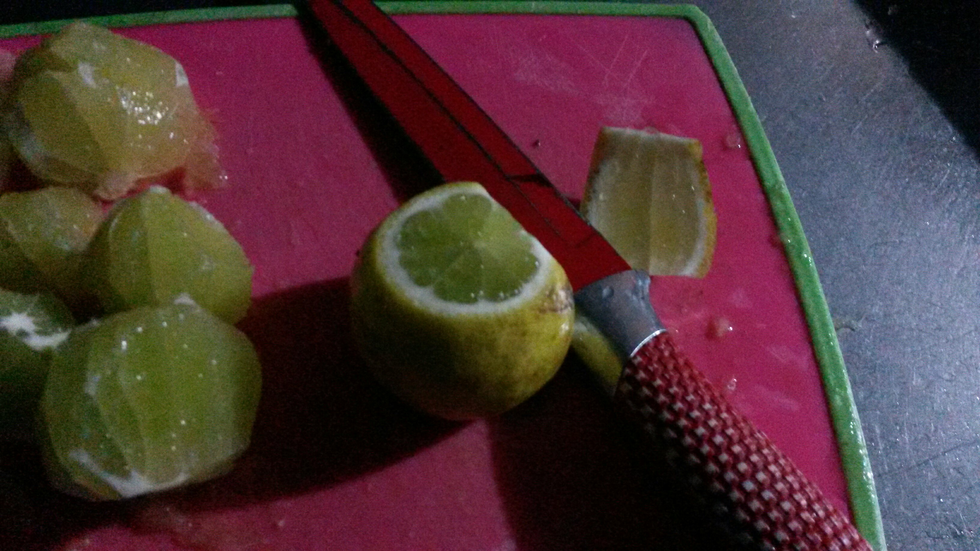 - mit guter Laune in den Garten gehen und herabgefallene Zitronen und Limetten (ca. 6 – 8 Stück) aufsammeln