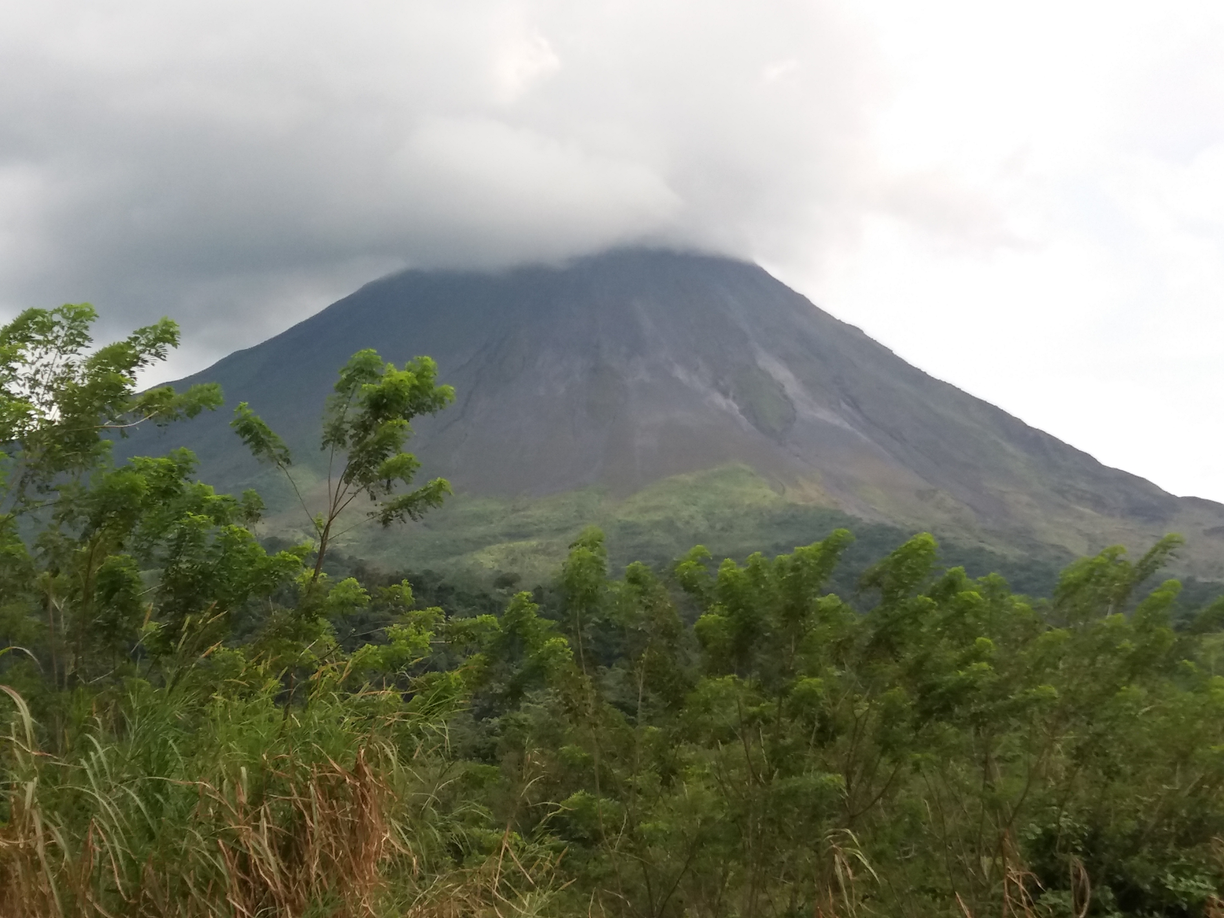 Unsere letzte Station war in Richtung Norden – zum Arenal, ein schlafender Vulkan in den Bergen. Die Landschaft hier war völlig anders als bisher an der Küste oder sonst in den Bergen. Die vielen saftgrünen Hügel, auf denen Rinder weideten, erinnerten uns fast ein wenig ans Allgäu. Nur, dass die Straßen voller riesiger Schlaglöcher sind und noch viel kurvenreicher als im Allgäu und mit mehr auf und ab. Wir fuhren am den Arenal See, dem größten See von Costa Rica, entlang. Was für eine Aussicht das war. Es wurde langsam dunkel und Regen setzte ein. Zum Glück nicht mehr so stark wie neulich. Wir hefteten uns an die Fersen eines Jeeps vor uns, der uns die lästige Arbeit, nach Schlaglöchern zu schauen und bei Brücken (die hier immer nur einspurig sind) vorsichtig anhält, um nach Gegenverkehr zu schauen. Die Fahrt kam uns unendlich vor. Diesmal hatten wir vorgesorgt und uns im Vorhinein ein Hostel ausgesucht. Als wir dann ankamen hatten wir ein Zimmer für uns – keine Luxusabsteige, die Betten waren jedoch bequem und wir hatten gutes WLAN.