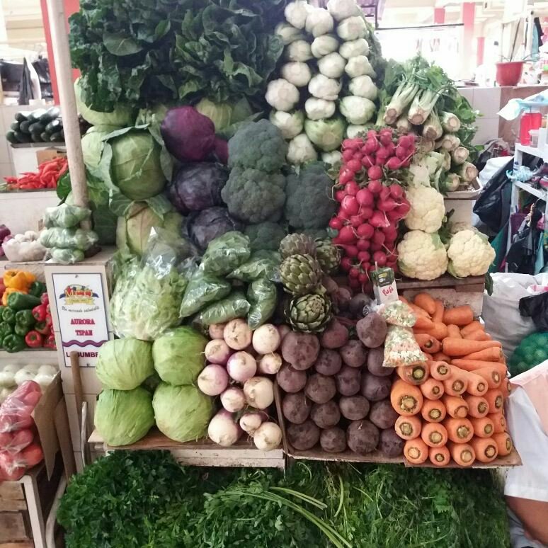 Als wir im Markt von Quito und umschauten, was wir denn Essen und Trinken könnten, fing ein Gerangel um uns als Kunden an. Jeder pries lautstark seine Waren an und fuchtelte wild mit den Händen, wir sollten doch zu ihnen kommen. Völlig verwirrt und überfordert räumten wir erst einmal das Feld und zogen uns zu den Gemüse- und Obstständen zurück, um etwas Luft und Ruhe zu bekommen. Dann hielten wir Kriegsrat: wer wollte war und wo sah der Stand am sympathischsten aus. Mit einem klaren Ziel im Auge steuerten wir dann auf den Stand zu und bestellten unsere Säfte und dann noch ein Tagesgericht, eine Art ecuadorianscher Kartoffelpuffer, dazu gab es super leckere Avocado, Spiegelei, Rote Beetesalat und Blattsalat und eine Wurst. Bei dieser großen Auswahl konnte jeder von uns mitessen und die Säfte hier machen so etwas von satt.