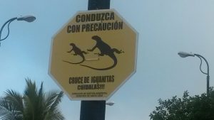 Bei all dieser Tiervielfalt ist es natürlich klar, dass hier auch andere Verkehrsschilder aufgehängt sind. Da macht es durchaus sind, auf überquerende Schildkröten oder Iguanas hinzuweisen, das ist kein Touri-Gag.