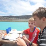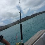 Auf dem Rückweg versuchten wir uns dann noch im Hochseefischen. Die Jungs waren ganz aufgeregt, als die Leinen losgeworfen wurden. Nach kurzer Zeit schon bissen an beiden angeln Fische an. Einer hatte so viel Power, dass er mit samt dem Köder auf und davon schwamm. Den anderen Fisch hatten wir lange am Haken und gerade als wir den Riesenfisch aus dem Wasser zogen wollten, sprang er vom Haken. Glück für die Fische, Pech für uns. Insgeheim war ich ganz froh darüber. Ich hätte nicht zusehen wollen, wie der Fisch getötet wurde. Mir sind sie lebendig dann doch lieber. (Obwohl viele auch wirklich gut schmkecken)