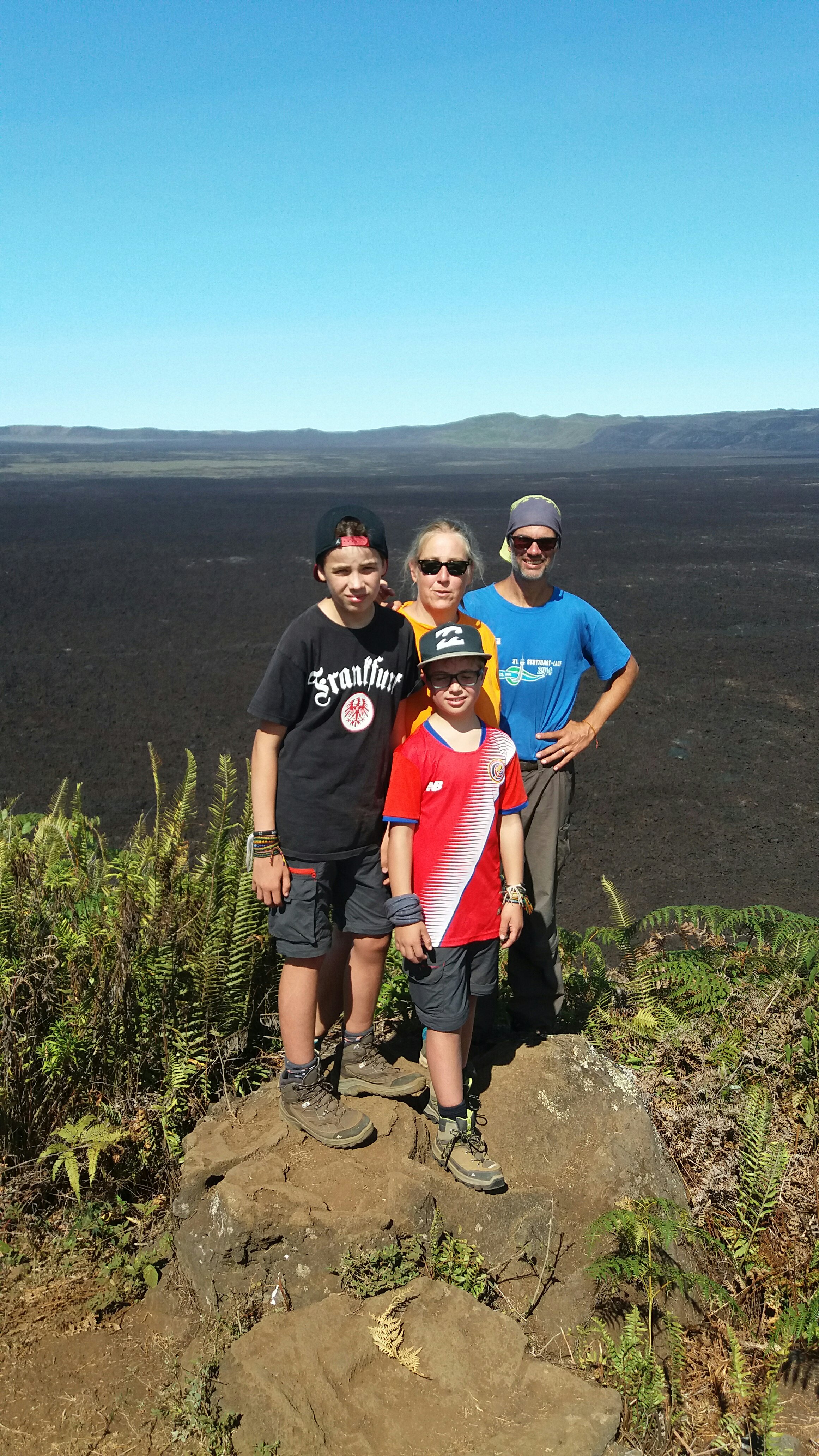 Bei unserer Vulkantour lernte ich mal wieder etwas über die deutsche Kultur. Am Rande des Kraters waren alle damit beschäftigt, Selfies zu schießen. Wir konzentrierten uns mehr drauf, die Landschaft und Natur aufzunehmen, Ivan und die Kanadier konzentrierten sich auf Aufnahmen mit ihnen zusammen. Es wurden „beinahe“ live Videos gedreht (mit der Vorstellung der ganzen Reisegruppe), die dann im Anschluss gleich auf Facebook gestellt wurden. Wir machten zwar auch Fotos von uns am Kraterrand und ich nahm die Gelegenheit war, endlich mal wieder ein Familienfoto zu machen. Die Kanadierin machte von uns die Fotos. Wir lächelten in die Kamera und Rhonda schoss ein paar Fotos. Dann forderte sie uns auf, die Hände hoch zu nehmen, um etwas mehr Action zu zeigen. Die Kinder und wir waren etwas verwirrt. Ich dachte erst, „oh nee, jetzt kommen die super-gute-Laune-Fotos…“. Als ich die Bilder dann auf dem Handy betrachtete, musste ich laut loslachen. Die ersten Fotos waren ganz nach deutscher Manier: vier lächelnde Menschen schauten in die Kamera. Dann die „amerikanischen“ Fotos. Strahlende Gesichter und etwas Bewegung. Ich hätte nie gedacht, was für einen Unterschied das ausmacht.