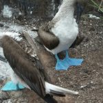 Auf den Lavafelsen brüten die Blaufußtölpel (auch liebevoll Boobies genannt). Wir konnten einige Jungtiere sehen und eine Glaufußtölpeldame, die gerade brütete. Ein Stück weiter hatten wir das Glück, ein Booby-Pärchen zur sehen. Das Männchen warb gerade um die Gunst der Dame. Dies funktioniert so, dass das Männchen dem Weibchen stolz seine blauen Füße zeigt und dabei einen Tanz aufführt. Es war herrlich dem tanzenden Booby zuzusehen. Die Rückfahrt, nachdem wir wieder die hohen Wellen hinter uns gelassen hatten (es gab Beifall für den Kapitän), hing jeder von uns seinen Gedanken nach. So viele tolle Erlebnisse, die musste jeder von uns erst einmal verdauen.