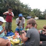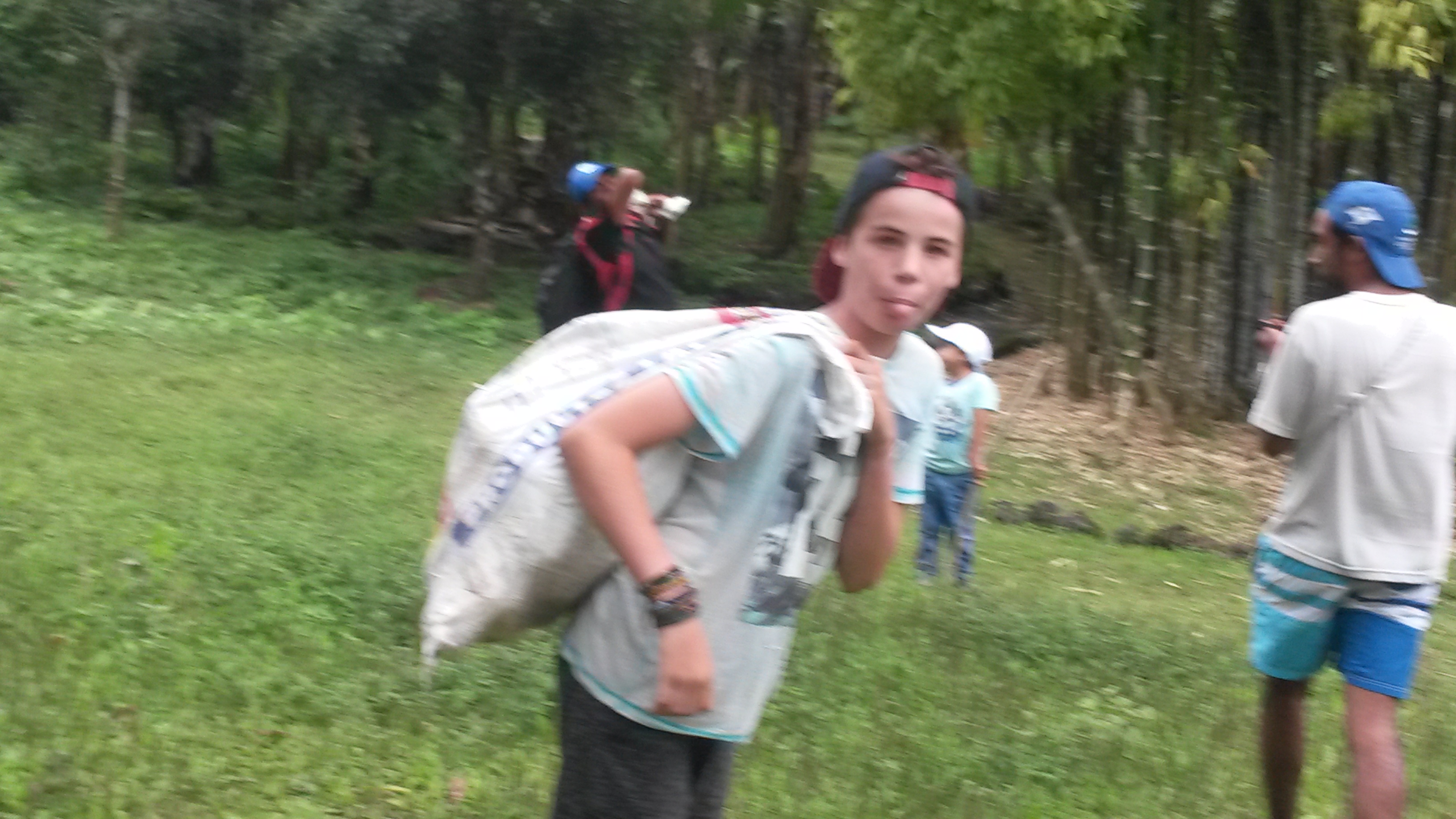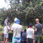Die Freiwilligen der Organisation, bei der wir abends Englisch und Deutsch unterrichten, unternehmen auch mit den Kindern vor Ort verschiedene Dinge. Diese Woche gingen sie ins Hochland, um dort Obst zu pflücken. Silas und Cayo waren auch mit dabei. Vor dem Büro stand schon ein LKW, mit dem Angel, der bei uns im Unterricht ist, uns ins Hochland fahren würde. Ein paar Kinder standen bereits da und wurden von ihren Müttern verabschiedet. Leo, der Jüngste, war 5 und die anderen so um Cayos Alter rum. Was für eine herrliche Fahrt. Alle standen im offenen LKW und ließen sich den Fahrtwind ins Gesicht blasen. Die Kids jubelten und rissen ihre Arme in die Höhe. Wir kamen an einer Finca an, auf Touristen in Zelten campen können. Ein riesiges Areal mit vielen, vielen Obstbäumen: jede Menge Orangen-, Mandarinen-, Zitronen- und Mangobäumen. Dazu noch einige Papayabäume und Maracujapflanzen. Wie im Garten Eden! Auf der Finca leben auch einige Landschildkröten. Dies war die erste Attraktion für die Kids. Statt Streichelzoo gab es Schildkrötenfüttern. Sie liebten die frisch gepflückten Orangen und auch die großen grünen Blätter, die extra für sie angepflanzt wurden. Alle Kinder waren im Glück, als die Schildkröten ihnen aus der Hand fraßen. Weiter ging es dann mit Orangen pflücken. Die Kinder setzten sich auf die Schultern der Volontäre und pflückten los. Einige der Jungs waren anfangs sehr schüchtern, erst später trauten sie sich dann auch, mit zu pflücken. Die Säcke waren schnell gefüllt, obwohl wir das Pflücken oft unterbrachen, um selbst welche zu essen oder einfach das geniale Gelände genossen. Die Stimmung war ausgelassen, bei den Kids und bei den Erwachsenen. Wir kamen an einer ganzen Mangobaumallee vorbei – wie schade, dass um diese Jahreszeit keine Früchte auf den Bäumen waren. Das wäre ja fast wie im Schlaraffenland geworden! Nach der „Arbeit“ gab es auf der großen Wiese ein ausgedehntes Picknick. Jeder hatte etwas mitgebracht und teilte es mit allen. Es gab sogar eine Guanabana und Enriques Mutter hatte frischen Popcorn gemacht. Leo, der Jüngste gab ganz stolz jedem von uns ein Bonbon in die Hand. Zum Schluss wurde gespielt. Sackhüpfen macht man hier mit Reissäcken. Zuerst die Kinder, dann die Erwachsenen. Was für eine Gaudi, als alle durch das Gras kugelten. Eierlaufen mit einem Löffel im Mund und Dreibeinlaufen. Es war einfach schön, mal wieder im Kindergeburtstagsfeeling zu sein. Mit diesem Gefühl stiegen wir mit vollen Orangensäcken wieder auf den LKW und genossen sehr ausgelassen die Fahrt. Wir fuhren quasi in den Sonnenuntergang hinein – unbeschreiblich schön.