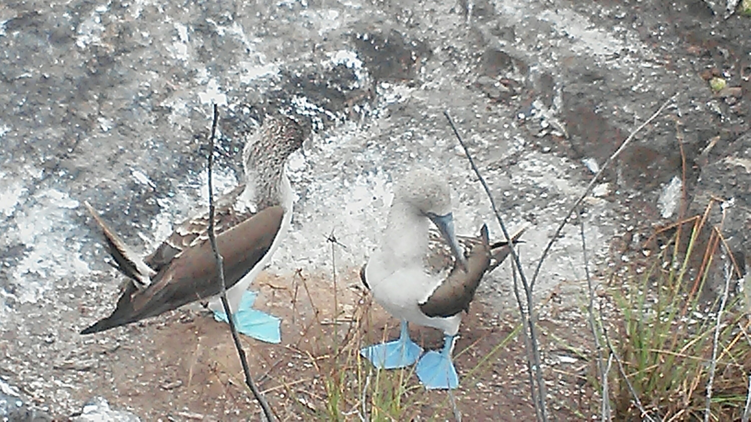 Die absoluten Lieblingsvögel von Silas und Cayo. Booby, das ist der Kosenamen hier für die Blaufußtölpel. Herzige Vögel, die an Land etwas behäbig daherkommen, in der Luft pfleischnell und ausgezeichnete Fischer sind. Sie stürzten so schnell ins Wasser, dass man sie oftmals gar nicht mehr richtig sehen kann. Auf Isabela haben wir Boobies recht häufig am Strand umherfliegen sehen. Als wir auf der Tour zu Los tuneles waren, gingen wir an Land. Dort nisten die Boobies. Wir konnten hier Jungtiere sehen und auch ein Pärchen, das gerade brütet. Boobies sind sehr treue Tiere. Haben sie einmal ihren Partner gefunden, so behalten sie ihn ihr ganzes Leben lang. Die Wiebchen sind etwas größer als die Männchen und haben größere Pupillen. Sie gurren im Vergleich zu den Männchen, die pfeifen können. Blaue Füße? Wie kommt denn das? Zum einen sind die Fasern an den Schwimmhäuten so angeordnet, dass nur das blaue Licht optimal reflektiert wird.