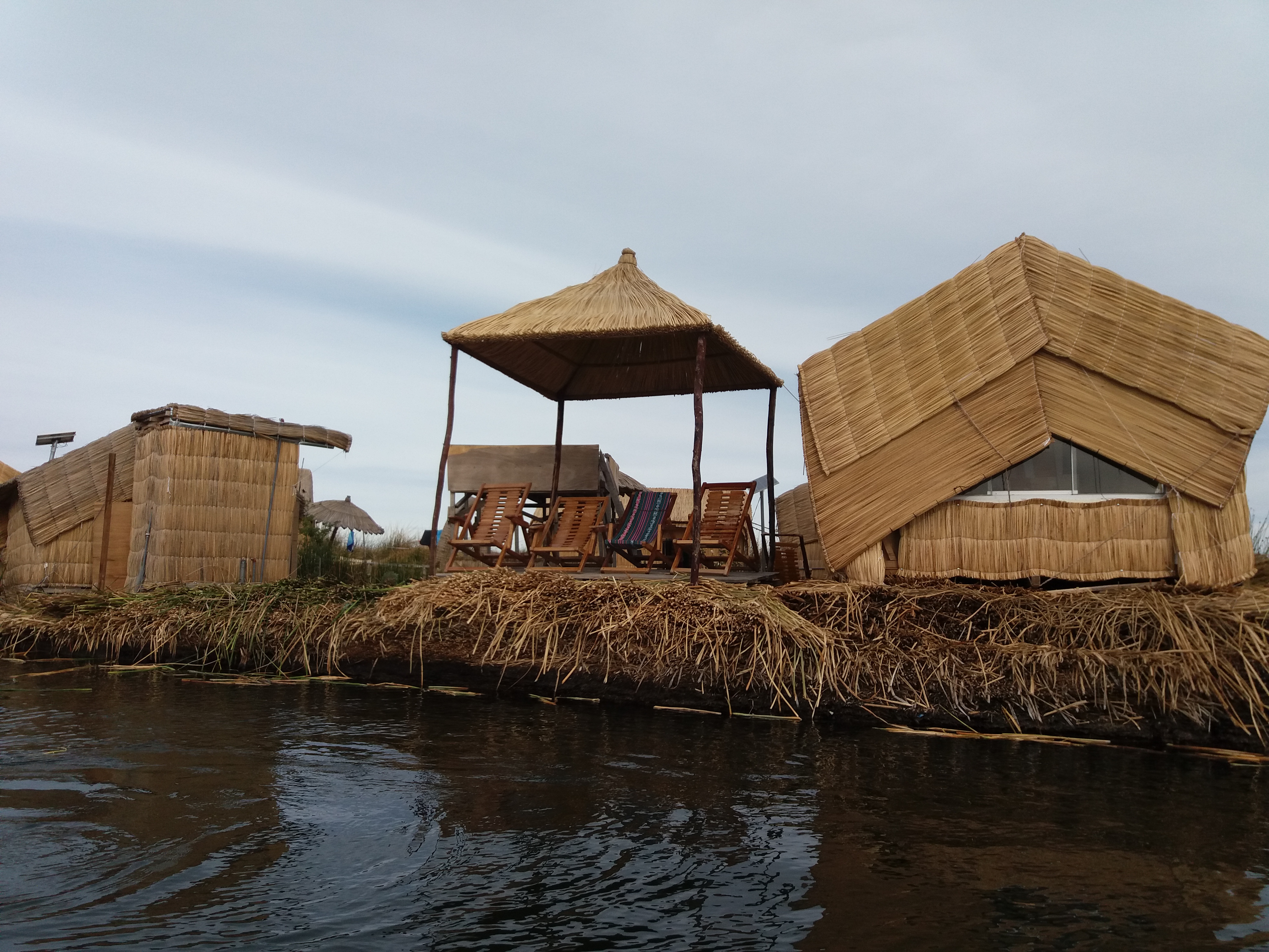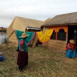 Als ich bei Airbnb nach einer Unterkunft in Puno suchte, sah ich, dass es auch möglich war, auf einer der floating Islands der Uros übernachten zu können. Klar, das wollten wir alle einmal ausprobieren und so buchten wir 2 Übernachtungen dort. Die Uros sind ein eigenes volk mit einer eigenen Sprache, die sowohl in Peru als auch in Bolivien auf dem Titicacasee leben. Sie leben auf kleinen Inseln, die auf dem Titicacasee schwimmen. Die unterste Schicht besteht aus Erde und Wurzeln auf dem das Schilf wächst. Eine Insel besteht aus mehreren Blöcken aus Schilfwurzeln und Erde, die mit Stöcken und Seilen miteinander verbunden wurden. In der Regenzeit, wenn der Titicacasee mehr Wasser hat, fahren sie 6 bis 7 km weit, und schauen, ob einige der Wurzelballen im See treiben und ziehen sie mit Seilen zu ihrer Insel. Die Insel von Dario, auf der wur 2 Tage verbrachten, ist 10 Jahre alt und besteht aus 15 verschieden große Blöcke. Wenn die Wurzelballen,die etwas über 50cm tief sind, verschnürt sind, kommt eine Schicht getrocknetes Schilf darauf (auch ca. 50 cm hoch). Durch die Feuchtigkeit verrottet das Schilf recht schnell und so muss alle 15 Tage wieder eine neue Schicht getrockentes Schilf auf die Insel gelegt werden. Die Häuser der Uros waren ursprünglich komplett aus Schilf (heutzutage aus Holz, Wellblech (im Dach) und Schilf. Die Häuser stehen nicht direkt auf dem Schilfbiden, sondern auf einer Holzkonstruktion, so dass sie nicht so schnell verrotten. Die Häuser müssen jedoch auch regelmäßig ausgetauscht werden. Wird die Insel mit Schilf aufgestockt, so müssen die Häuser verrückt werden und auch mit Schilf aufgestockt werden. Der Bau eines Hause dauert ungefähr 1 Monat, der Bau eines Schilfschiffes 14 Tage.