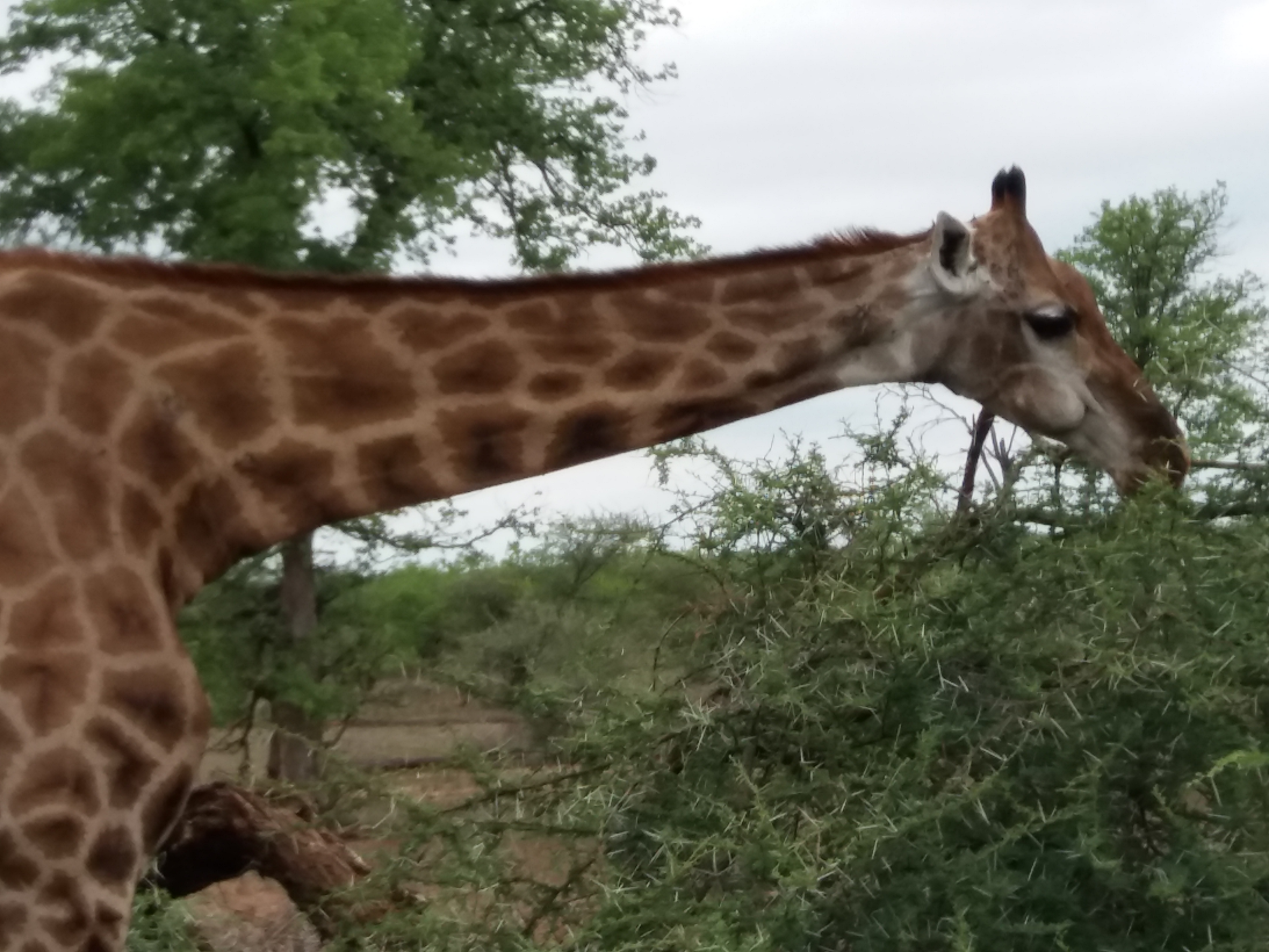 Neugierig fuhren wir in den Park hinein. Was uns hier nun erwarten würde? Das erste Stück fuhren wir auf der großen Asphaltstraße entlang und sahen gleich ein Polizeiauto, das eine Radarkontrolle machte. Silas schlug vor, einen kleinen nicht alphaltierten Weg zu nehmen. Und schon liefen die ersten Antilopen (in diesem Fall Impalas) uns vor die Nase. Wir waren entzückt! Die ersten Tiere vor der Linse. Nur ein paar Meter weiter graten am Straßenrand ein paar Zebras. Wie schön, wenn man Tiere einfach so in der freien Wildbahn anschauen kann. Wir waren ganz im Glück. Als nächstes sahen wir drei Elefanten an einem Wasserloch sich baden. Wir hielten richtig viel Abstand, da es doch ein ganz anderes Gefühl ist, wenn man Edlefanten gegenübersteht und kein Wassergraben zwischen den Elefanten und uns ist. Da hatten wir so richtig Respekt. Wir waren noch keine 30 Minuten im Park und hatten schon jede Menge Tiere gesehen. Wir nannten unseren Weg die Zoo-Straße, da alle Tiere hier quasi als Empfangskomittee uns erwarteten. Dann tauchten auch noch Giraffen auf. Das war einfach ein wunderbares Gefühl! Wir mussten an unserem ersten Tag die Tiere gar nicht „suchen“, die tauchten einfach so aus dem Nichts auf.