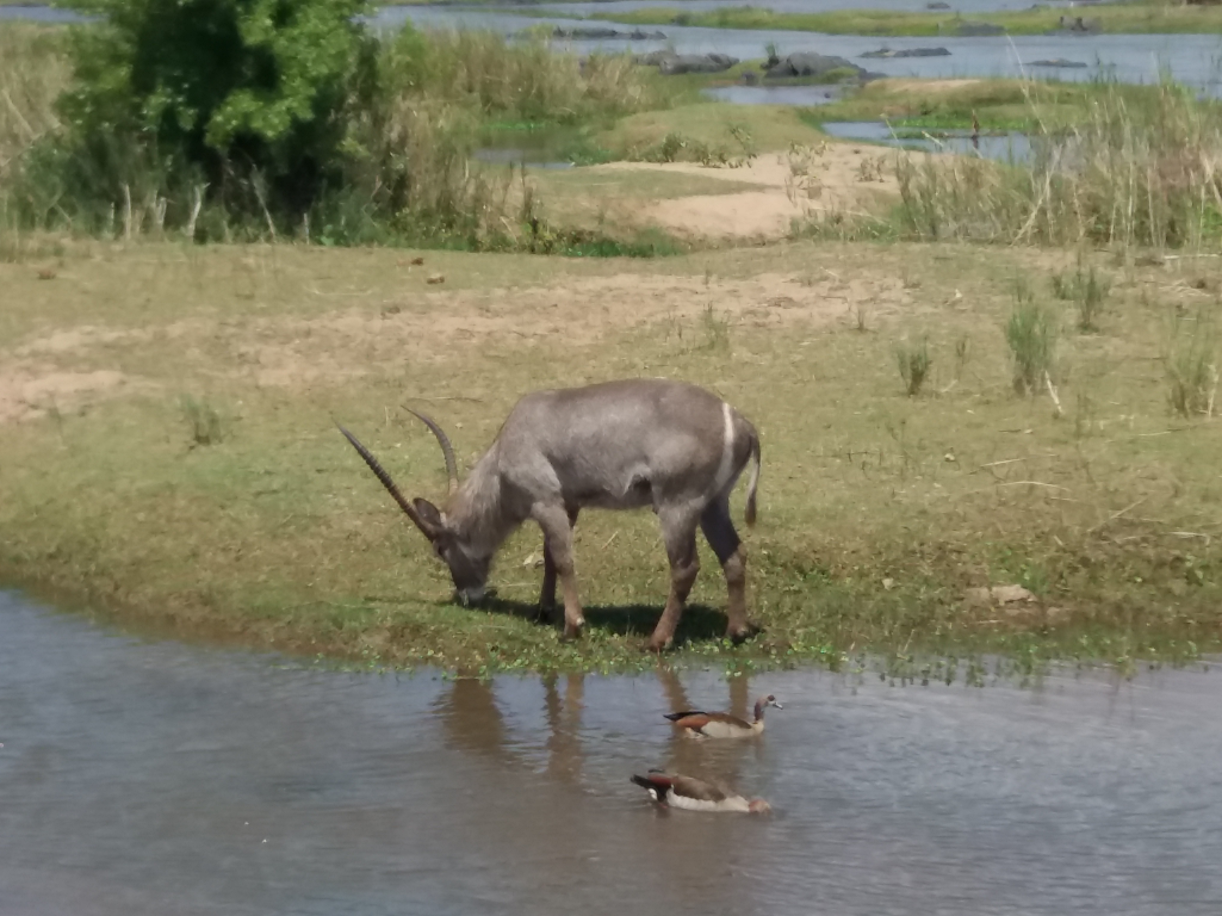 Der Waterbok sieht mit seinen langen Hörnern sehr imposant aus. Da er oft in Flussläufen unterwegs ist, sind seine Hufe so ausgelegt, dass sie beim Auftreten leicht auseinanderspreizt, um so mehr Halt im Schlamm zu haben.