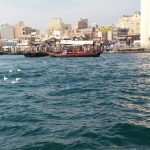 Abra, so heißen die kleinen niedrige Boote, mit denen man in der Altstadt über den Creek zum Souk fahren kann. Zuerst wollte uns ein Mann eine private Tour anbieten. Erst als wir darauf bestaden, dass wir nur ans andere Ufer wollten, kamen wir dann zu den „normalen“ Leuten, die bereits auf der Abra saßen. Nach ein paar Miuten war das Boot auch schon voll. Die Fahr kostete pro Perso 1 Durham, das sid etwas mehr als 20 Cent. Dann schipperten wir auch schon los. Es war fast ein wenig unwirklich, in dem alten Holzboot zu sitzen und in der Gegend die neuen Hochhäuser zu sehen. Ein witziger Anblick, die alten Holzboote und dann die Skyline von Dubai. Eine wunderschöe, wenn auch nur kurzer Ausflug. Sehr empfehlenswert.