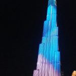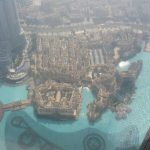 das ist ungefähr das Motto von Dubai. Aller muss das Größte , Höchste,.. sein. Dieses Motto haben wir nun live erlebt an einem Tag! Zuerst ging es zur Dubai Mall, mit 350.000 Quadratmetern,eines der größten Einkaufszentren der Welt. Dann zum Burj Khalifa, dem höchsten Turm der Welt mit 828m Höhe. Wir hatten bereits unsere Tickets, um das lange Warten zu vermeiden. Wie immer in Dubai war alles bestens organisiert. Während wir in der Schlange (kurze!) standen, verkürzte ein interessanter Film die Wartezeit. Hier feiert sich Dubai wirklich selbst. Sehr anschaulich und sehr emotional mit Lichtern und Videos etc. wird der Bau des Turms gezeigt, dann geht es auch schon zum Aufzug. Wir hatten das Vergnügen mit einer italienischen Reisegruppe im Aufzug zu landen, mal wieder Zeit für soziologische Studien…. In 55 Sekunden ging es dann bis zur 123. Etage. Ich dachte, dass sich das viel mulmiger anfühlt, wenn man so schnell nach oben fährt. War es aber gar nicht. Und als ich auf die Aussichtsplattform ging, empfand ich es gar nicht als so hoch, da durch die Glasscheiben kein Luftzug zu spüren ist. Ich hatte das Gefühl, auf eine Spielzeugstadt zu schauen, aber ich hatte nicht das keinen Bezug dazu, wie hoch ich war. Im Vergleich dazu enpfand ich es als wesentlich „höher“ auf dem Eiffelturm zu stehen und nach unten zu schauen. Da war mir wesentlich mulmiger zumute. Da es morgens recht neblig war, hatten wir nicht die beste Aussicht. Schön runterzuschauen, war es dennoch. Auch einen Moment einfach nur die Touris zu beobachten, war sehr erheiternd – jeder Soziologe wäre begeistert.