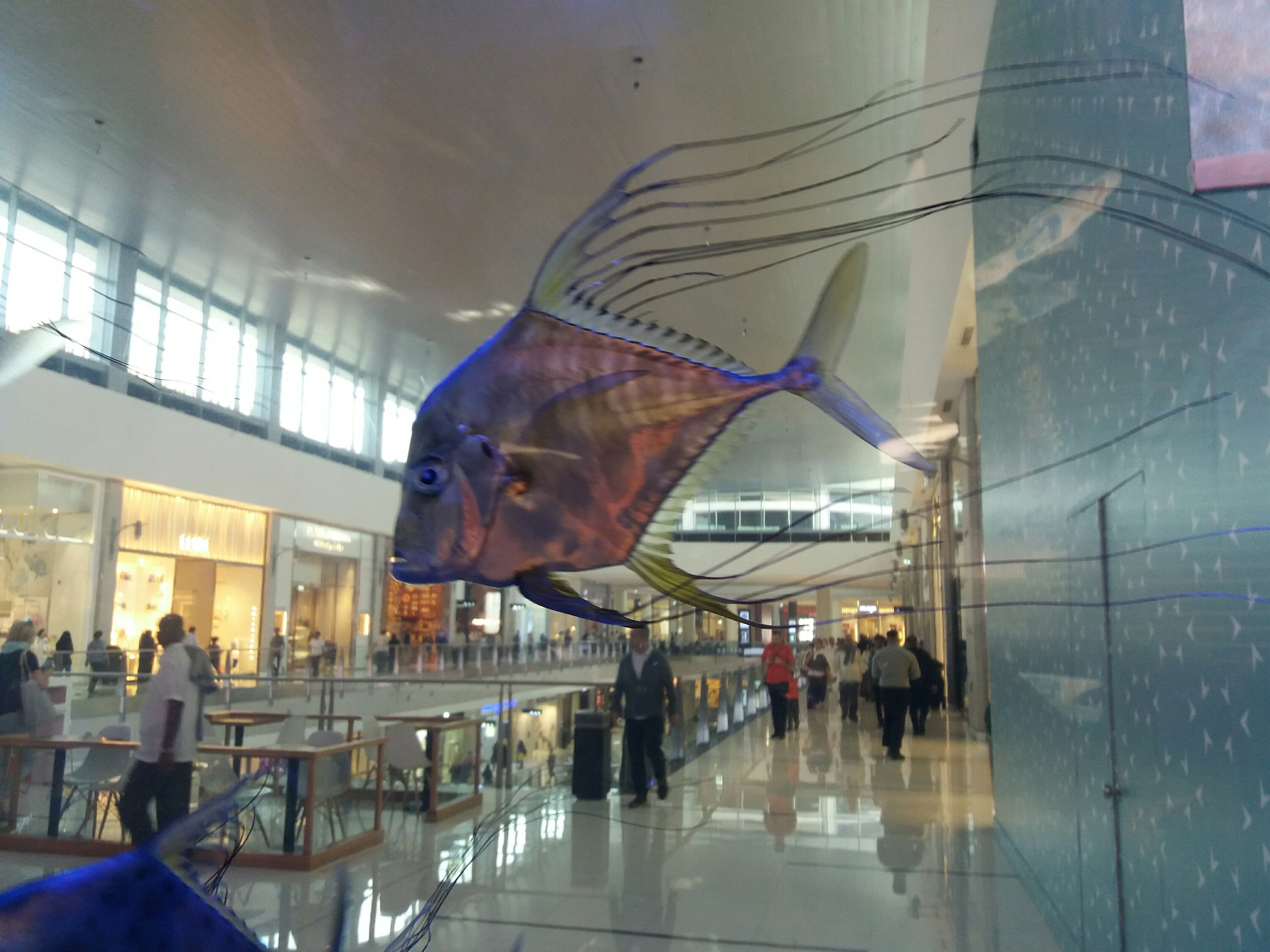 Ich muss gestehen, dass ich in den 14 Tagen hier in Dubai mehr Zeit in den Malls verbracht habe, wie die letzten 10 Jahre in Deutschland in Einkaufszentren. Ich mag Malls nämlich gar nicht. Das ist nicht so meins durch überdachte Gebäude zu schlendern und zu shoppen. Das einzige, was ich brauche, ist ein Buchladen, da brauche ich dann nicht noch 1000 andere Läden. Okay, ein wenig Bastel- und Künstlerbedarf ist auch noch ok, aber ansonsten bummle ich nicht wirklich gerne dort rum. Jetzt muss ich zugeben, dass Malls in Dubai und die in Deutschland sich doch stark unterschieden. In Deutschland laufen keien Scheichs und 1000 Touris rum fahren keine Elektroautos als Oldtimer umgebaut die vom Einkauf müden Emeratifrauen und ihren Mann durch die Mall, pompöse Wasserfälle, Fische, die im riesigen Aquarium durch die Gegend schwimmen gibt es nicht und auch architektonisch sind die Malls in Dubai denen in Deutschland in der Regel doch weit voraus. Ich muss auch zugeben, dass ich es echt schick fand, Kinokuniya, mein Lieblingsbuchladen in Tokio, auch in Dubai zu finden und die bequemen Sesseln zum Warten fand ich auch sehr angenehm. Aber alles in allem haben mich die Malls einfach erschlagen. Irgendwie bin ich die falsche Zielgruppe: mich regt dies alles nicht zum Konsumieren und Kaufen an – im Gegenteil. Ich habe in den Malls außer gegessen und getrunken nichts gekauft.
