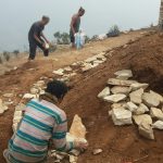 Das nächste große Projekt an der Schule ist der Bau eines Computerraumes. „Es soll etwas Besonderes werden. Die Kinder sollen genug Platz haben, es soll gemütlich sein, mit einem Sofa und die Kinder können dann an den Laptops arbeiten. Shamser hat bereits eine Spenden-Zusage von 10 neuen Laptops aus Singapur. Fehlt „nur“ noch der Raum. Es wird wieder ein nepalisches Steinhaus werden. Zuerst bedeutet das graben: mit Spitzhacke, Schaufel geht es ran. Zum Glück ist Nico ein Supermann, der unbegrenzte Kraft zu haben scheint und in einem fort gräbt und schaufelt. Gefühlt hat er 90% der Arbeit getan und wir restlichen, die 10%. Dennoch haben wir alle am Abend Blasen an den Händen und Rückenschmerzen. Wir wechseln uns ab, wer unterrichtet und wer am Haus weiterbaut. Es steht nun an, dass Fundament zu bauen, d.h. Steine in die gegrabenen Gräben zu schütten. Ein nepalischer Handwerker ist vor Ort und legt sich dann die Steine so zurecht, wie er es braucht. Steine schleppen fand ich wesentlich angenehmer als Graben. Wir machten teilweise eine Kette und zu sechst waren wir in 3 Stunden damit fertig. Ich war völlig überrascht, wie schnell das ging. Selbst Shamser meinste, dass er nicht damit gerechnet hatte, dass wir so schnell sind. Er dachte, dass wir den ganzen Tag brauchen würden. Beim Steineschleppen motivierte mich auch der Gedanke, dass wir hier für die Kinder einen schönen Raum schaffen, an dem sie viel Spaß haben werden und etwas für ihre Zukunft lernen können – da wurde aus Steine schleppen plötzlich, wir tun etwas für die Zukunft der Kinder. In den Pausen schauten die Kinder neugierig zu, so waren wir als Bauteam auch Teil der Schule.