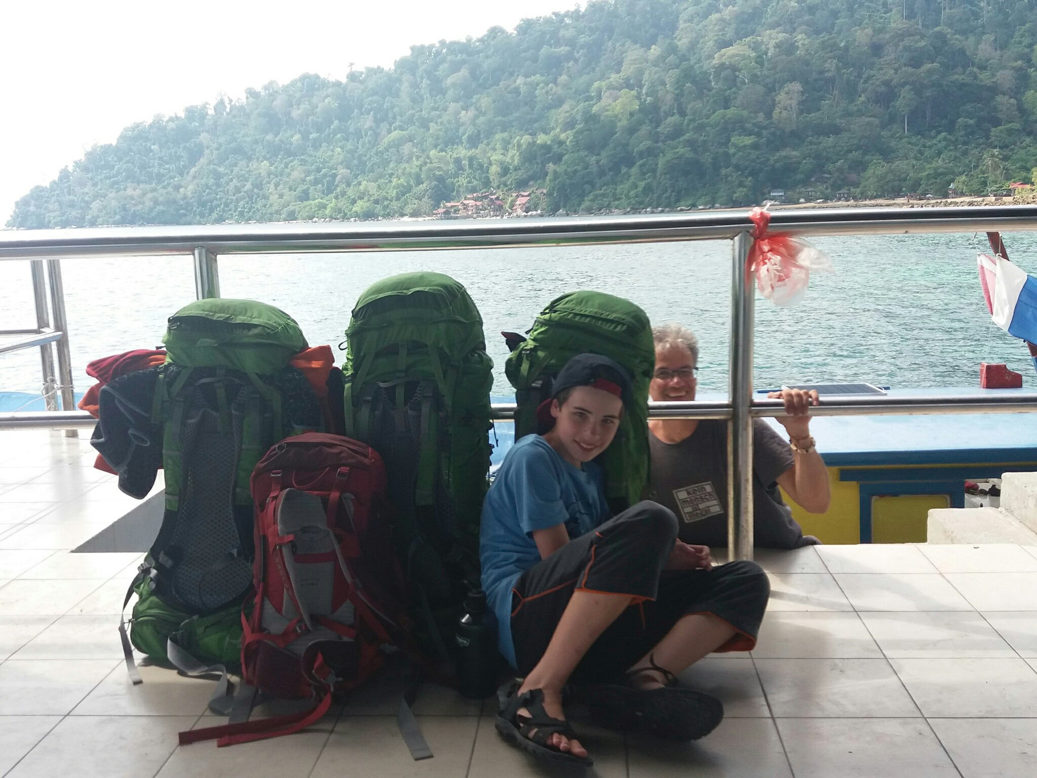 Wir hatten zwar in Kuala Lumpur bereits ein Päckchen aufgegeben, irgendwie haben wir jedoch auf Tioman uns noch T-Shirts gekauft und die Tauchmanuals wiegen ja auch ihren Teil. Wir haben nochmals richtig ausgemistet, so dass wir mit leichtem Gepäck weiterreisen können. Unsere Nachbarn kommen nämlich auch aus Deutschland. Sie waren mit uns auf dem Tauchboot und wir kamen ins Gespräch. Da das Tauchen ihre letzte Station ihrer Malaysiareise ist und sie noch Gepäck frei haben, konnten wir ihnen unsere Sachen mitgeben, die sie von Deutschland an uns zuschicken. Wie nett von Jasmin nd Alex. Tausend Dank an euch!